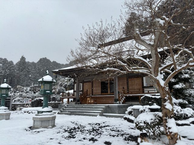 昨夜から降り続いた雪が積もり、あたり一面が真っ白になりました。正午現在、積雪は約10㎝です。